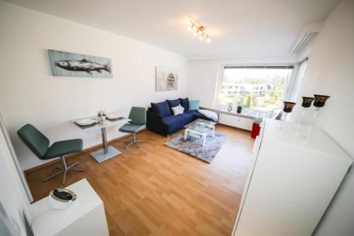 Ver las 23 fotos El Ferienwohnung Koje 117 im Haus Carpe Diem se encuentra en Niendorf, a solo 100 metros de la playa de Timmendorfer, y ofrece WiFi gratuita y aparcamiento privado gratuito. Este apartamento dispone de balcón, TV vía satélite, zona de cocina bien equipada con lavavajillas, nevera y horno y baño con ducha y secador de pelo. La playa de Niendorf está a 350 metros del apartamento. El aeropuerto más cercano es el de Lübeck, ubicado a 29 km del Ferienwohnung Koje 117 im Haus.