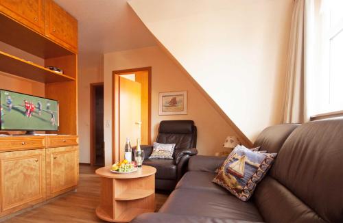 Strandburg Juist - Apartamento 301 (Ref. El 50969 es un establecimiento independiente situado en Juist, cerca del parque acuático de aventuras Juist. Este apartamento también alberga un restaurante. Este apartamento dispone de 1 dormitorio con 1 cama individual y sala de estar con 1 cama doble separada de la zona de estar. TV de pantalla plana vía satélite, zona de comedor y zona de cocina con nevera. El apartamento también dispone de zona de estar y baño. Las instalaciones de spa y bienestar incluyen sauna y piscina cubierta. El puerto de Juist está a 8 minutos a pie del Strandburg Juist - Apartment 301.
