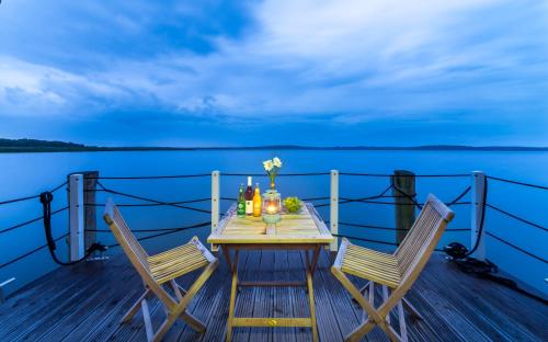Ver las 28 fotos El Komfort-Hausboote am Naturhafen Krummin ofrece alojamiento con aparcamiento privado gratuito en Krummin, en la región de Usedom. Todos los alojamientos cuentan con TV de pantalla plana, sala de estar con sofá, cocina bien equipada con zona de comedor y baño privado con ducha y secador de pelo. Hay lavavajillas, microondas, nevera, hervidor de agua y cafetera. En las inmediaciones se puede practicar ciclismo y piragüismo. También hay un jardín. El Komfort-Hausboote am Naturhafen Krummin se encuentra a 30 km de Heringsdorf y a 9 km de Zinnowitz.